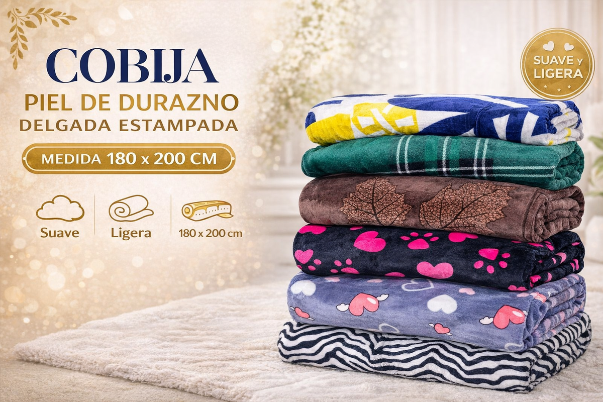 Cobija Piel de Conejo o Piel de Durazno Delgada - Estampada